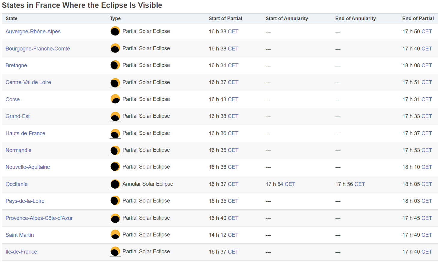 Elle sera même annulaire en Occitanie au moment où le Soleil plonge sous l'horizon, mais dans les Pyrénées en montagne cela s'avère impossible à voir je pense.